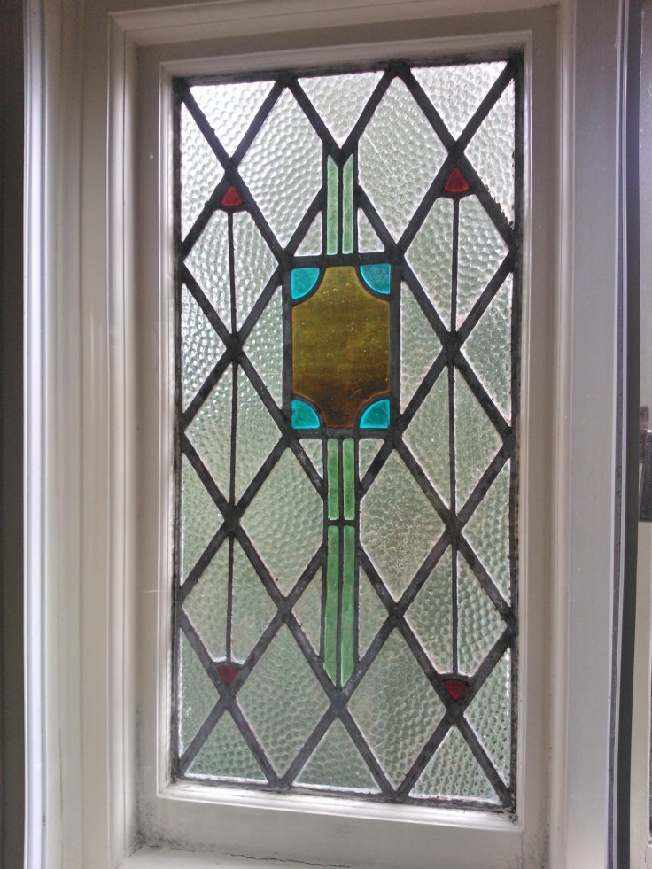 We have been working offsite this week on some in-situ repairs to a series of 1950s stained glass windows. The residential home has bay windows each with feature leaded panels and stained glass top lights. Most of the decorative panels contain some unique handmade mouth-blown coloured glass.