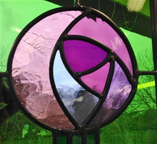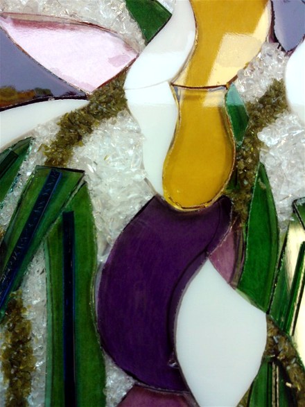 Their fused glass panels were made to their designs using a combination of coloured frits, stringers, gems and glass shapes.