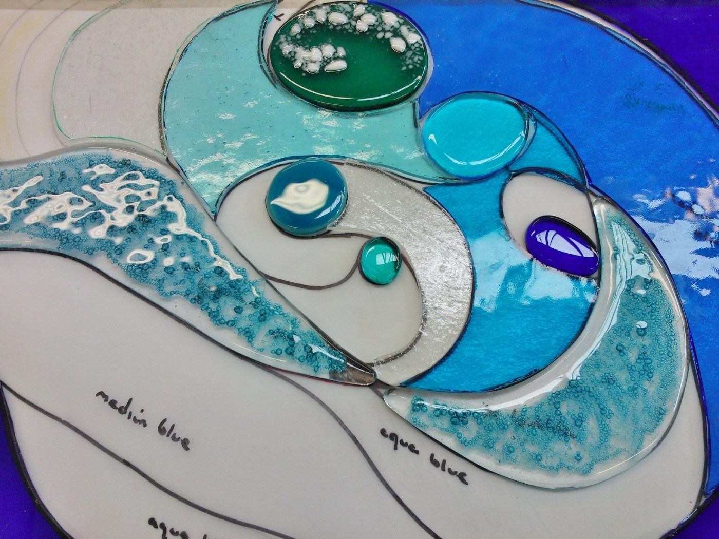 We have just finished an Art Glass wall panel for clients using our ‘Liquid Light’ fusing technique.