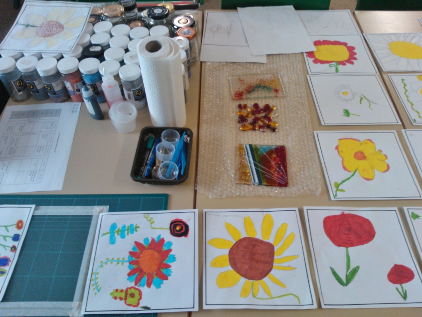 These artworks were then taken back to the studio and one was chosen to represent each class. The chosen design will then be made using the fusing techniques, using outline enamel, frits and mosaic gems.