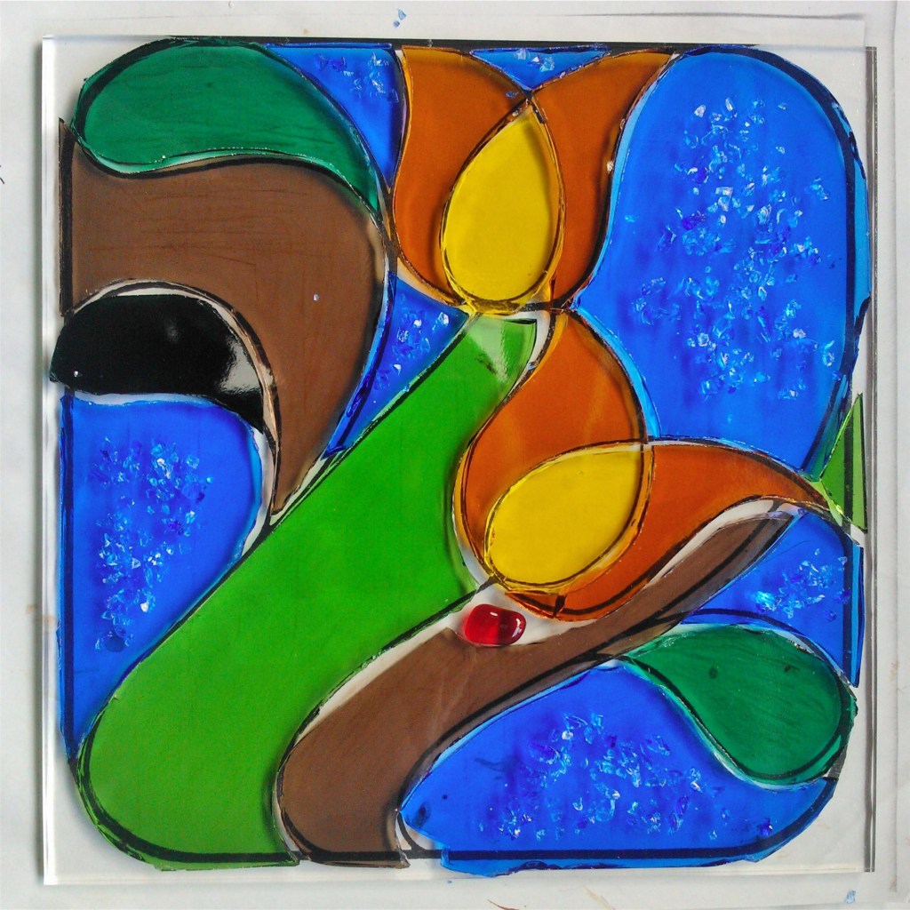 You will create an original piece of glasswork.  Depending on your level of experience, you can choose to make either a 15cm square or 20cm square panel, which can be formed square platter bowl.  Or a 15 x 26cm landscape panel that can be formed into a freestanding fused glass artwork.