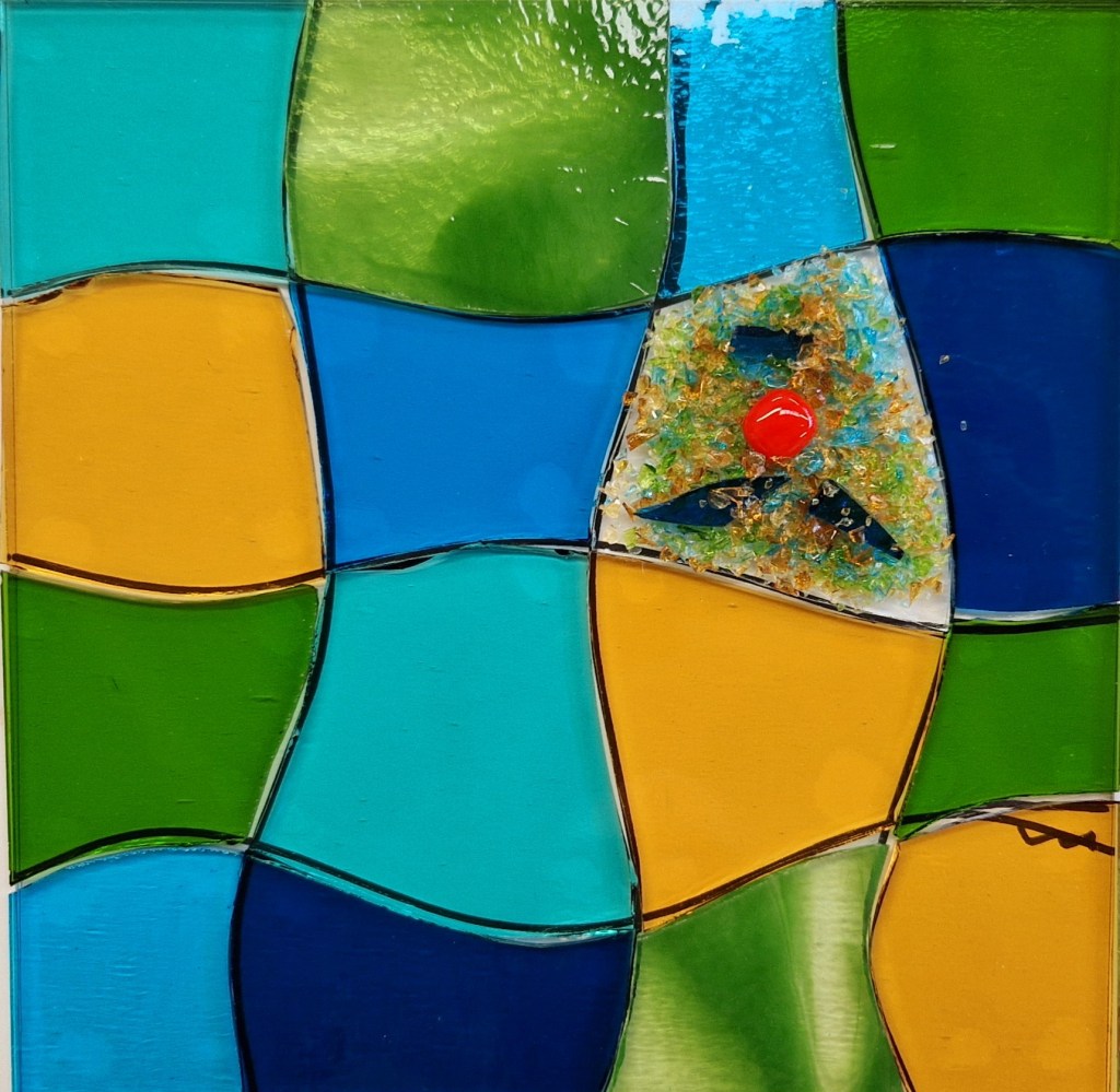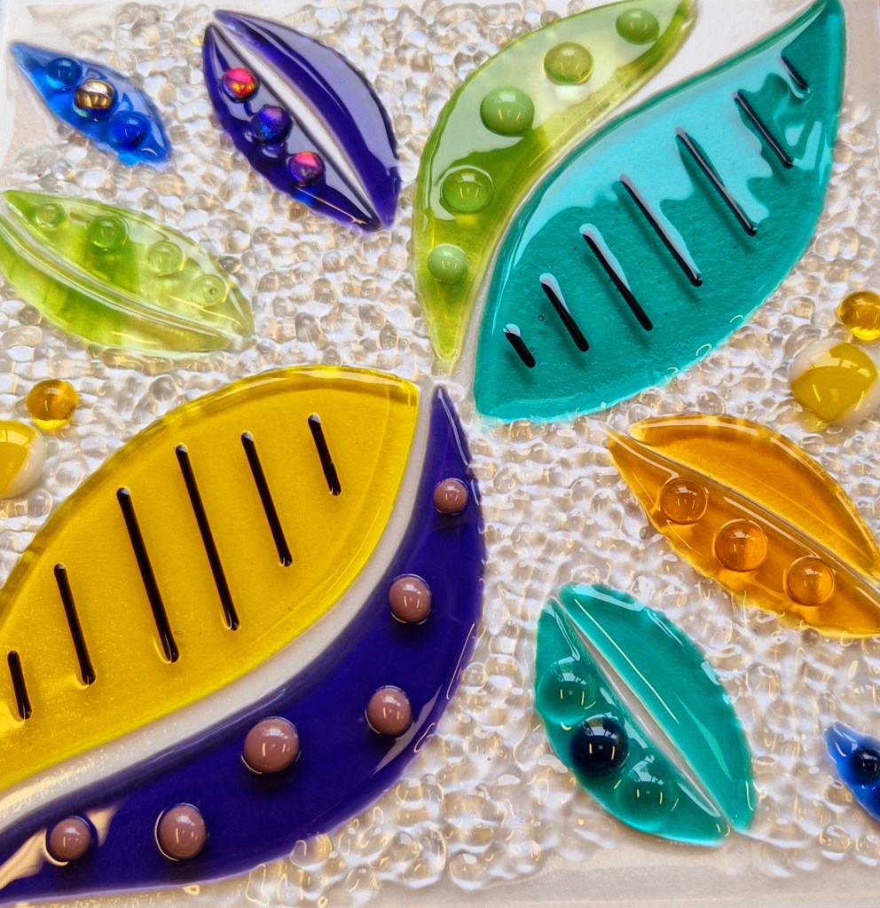 You will create an original piece of fused glasswork.  Depending on your level of experience, you can choose to make either a 15cm square or 20cm square panel, which can be formed square platter bowl.  Or a 15 x 26cm landscape panel that can be formed into a freestanding fused glass artwork.